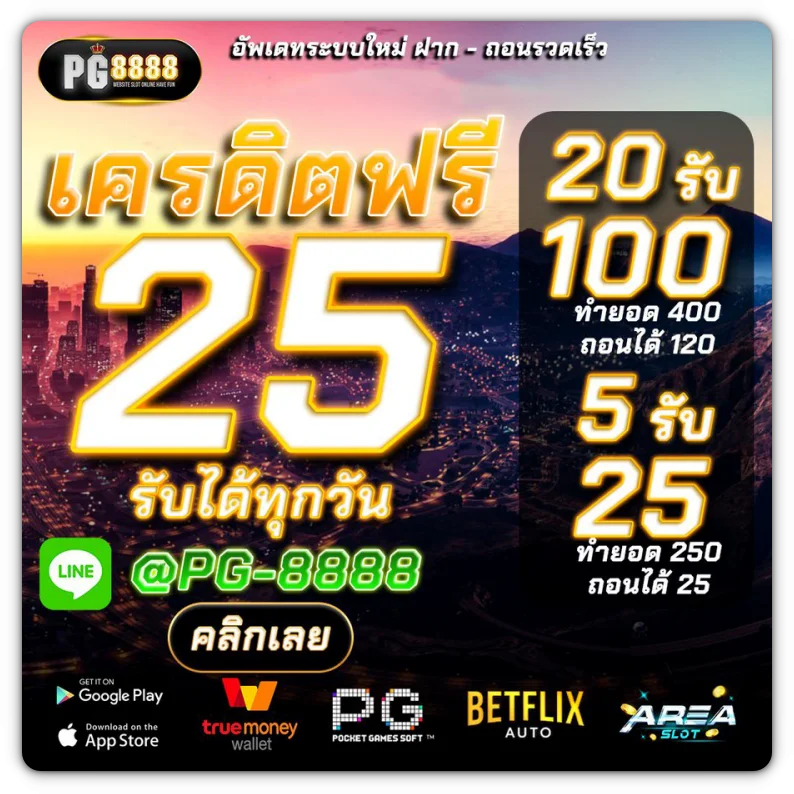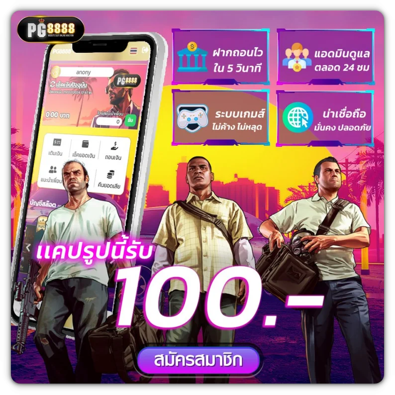 PG 8888 เว็บตรง อันดับหนึ่งสำหรับการเดิมพันออนไลน์ ที่มอบประสบการณ์เล่นเกมพนันครบวงจร ทั้งสล็อต บาคาร่า และเกมคาสิโนสด พร้อม เครดิตฟรีทดลองเล่นฟรี สำหรับสมาชิกใหม่ทุกคน ไม่ต้องกังวลเรื่องเงินทุน เพราะสามารถเข้าร่วมสนุกได้ทันที สมัครสมาชิกเพียง 1 บาทก็รับโบนัส 100 เล่นฟรีทันที เข้าสู่ระบบง่าย เล่นเกมได้ไม่อั้น พร้อมโปรโมชั่นสุดพิเศษและกิจกรรมแจกเครดิตฟรีทุกวัน เพื่อให้ผู้เล่นทุกคนได้สัมผัสความสนุกและโอกาสชนะรางวัลจริง